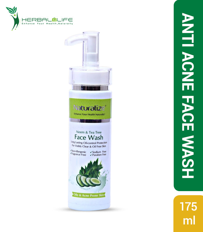 Naturalize Neem & Tea Tree face wash is ideal for acne prone skin as it helps to soothe irritation and inflammation, clear up pimples and remove bacteria from the surface of the skin. Neem extract help restore a youthful glow to dry or damaged skin and balance the skin tone. Regular usage gives you a clear and smooth skin.